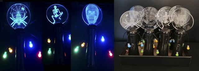 3 LED Action Skull wand 10"