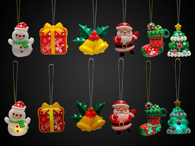 Light up Christmas ornaments 6asst. (Necklace)